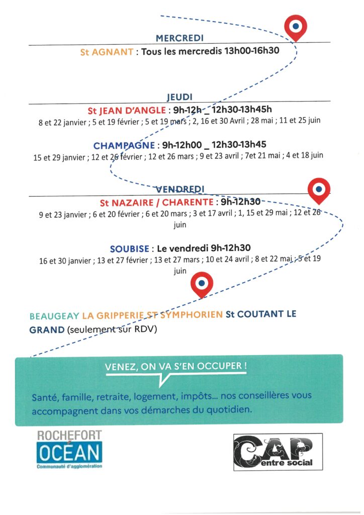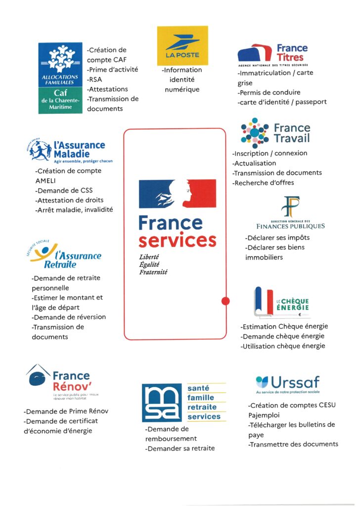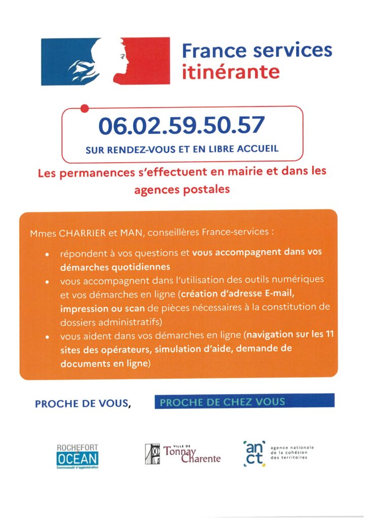 En 2026, les permanences de France Services se déroulent dans un bureau au sein de l’Agence Postale Communale de Saint-Agnant, 14 rue de La Poste, tous les mercredis de 13h à 16h30.