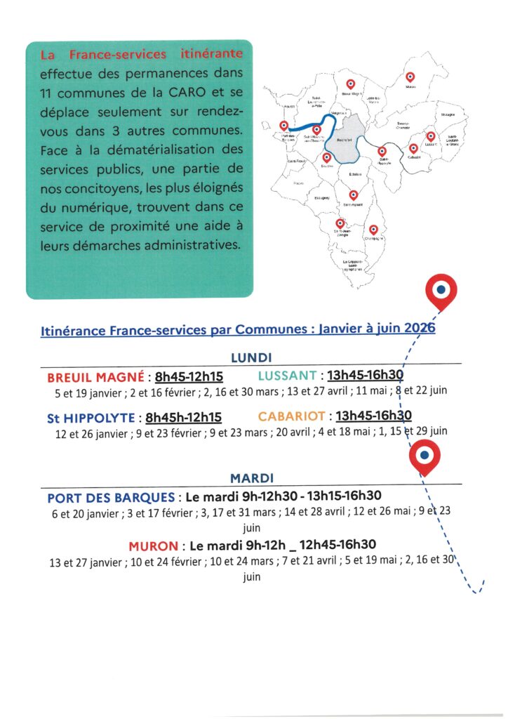 Les services sont accessibles sur rendez-vous en appelant le 06.02.59.50.57 ou en libre accueil.