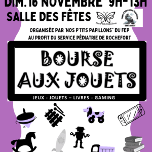 Bourse aux jouets organisée par « Nos Ptits Papillons » du FEP 16 Nov 09:00 - 13:00 Salle des fêtes de Saint-Agnant
