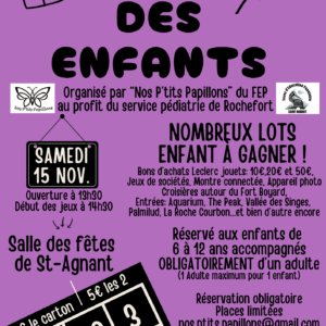 Loto des enfants organisé par « Nos Ptits Papillons » du FEP 15 Nov 13:30 Salle des fêtes de Saint-Agnant