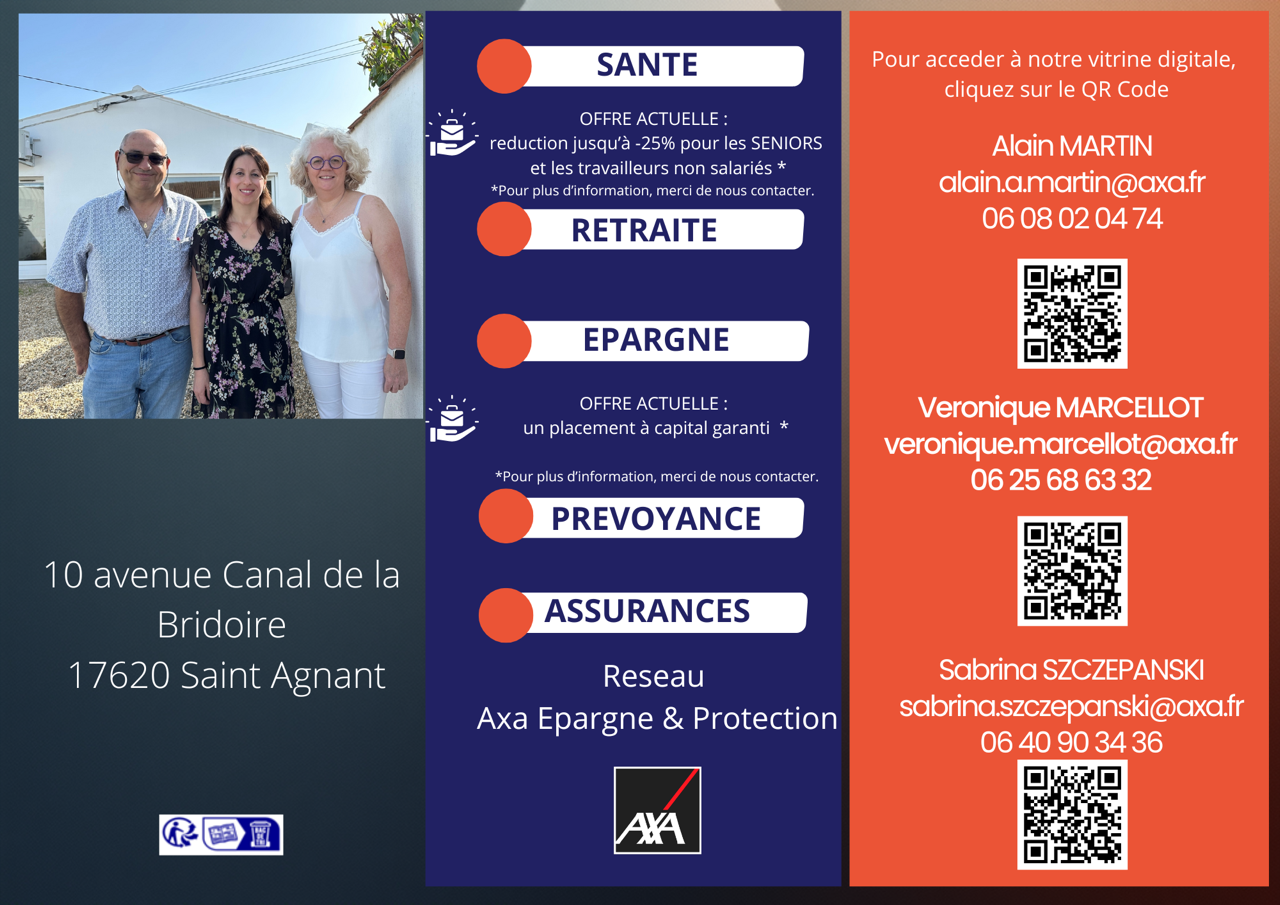 - Site Internet : https://agence.axa.fr/nouvelle-aquitaine/charente-maritime/saint-agnant-17620